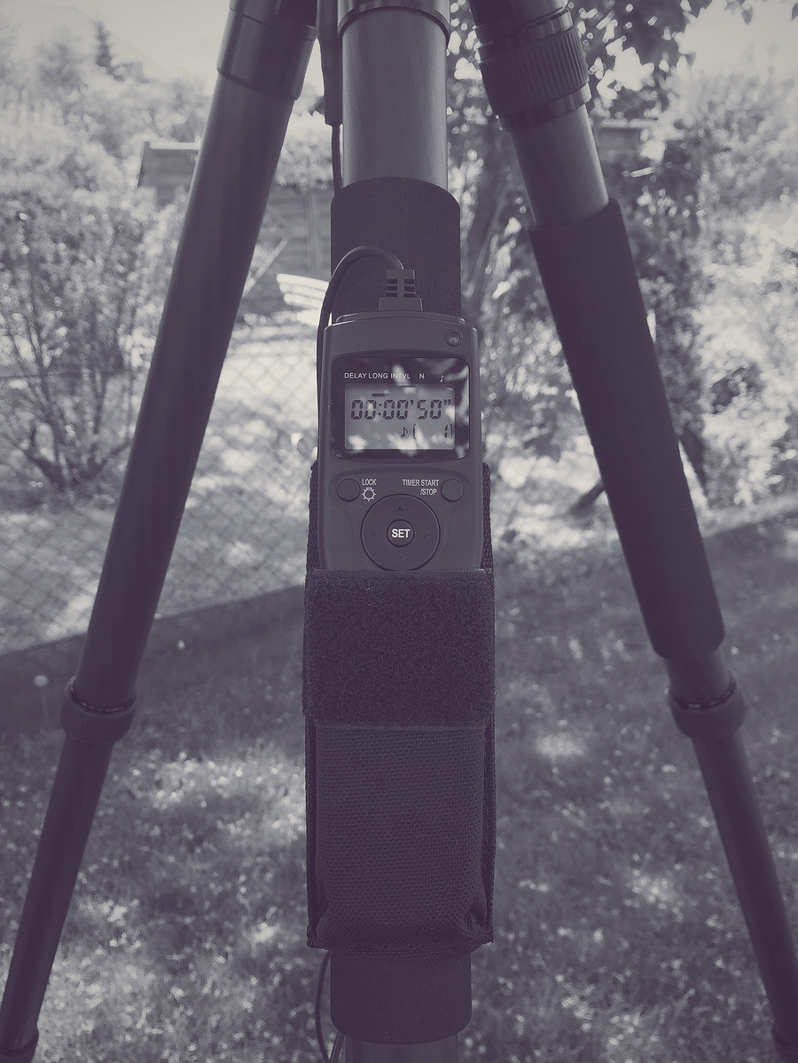 Nachdem ich neulich auf einem MakingOf-Foto des verehrten Fotofreund Andre Abtmeyer eine Idee dafür erhaschen konnte, habe ich mir etwas Material bestellt und das längere Wochenende zum Basteln benutzt. Der Köcher ist eine preiswerte Handytasche von Tatonka, wo ich kurzerhand die Klappe abgeschnitten und die Enden über einer Flamme verschmolzen habe. Letzteres verhindert das Ausfransen des Gewebes. Was soll ich sagen: Mein Fernauslöser “Ayex Timer-Fernauslöser N3” passt perfekt hinein. Befestigt ist das Ganze am Stativ, ich nutze aktuell das Modell SIRUI N-3204X, mit Klett-Kabelbinder von der Firma Hama. Das Gute ist, alles kann selbst beim Zusammenlegen installiert bleiben und stört somit keineswegs. Danke Andre für die Inspiration! Endlich kein Gebaumel mehr.